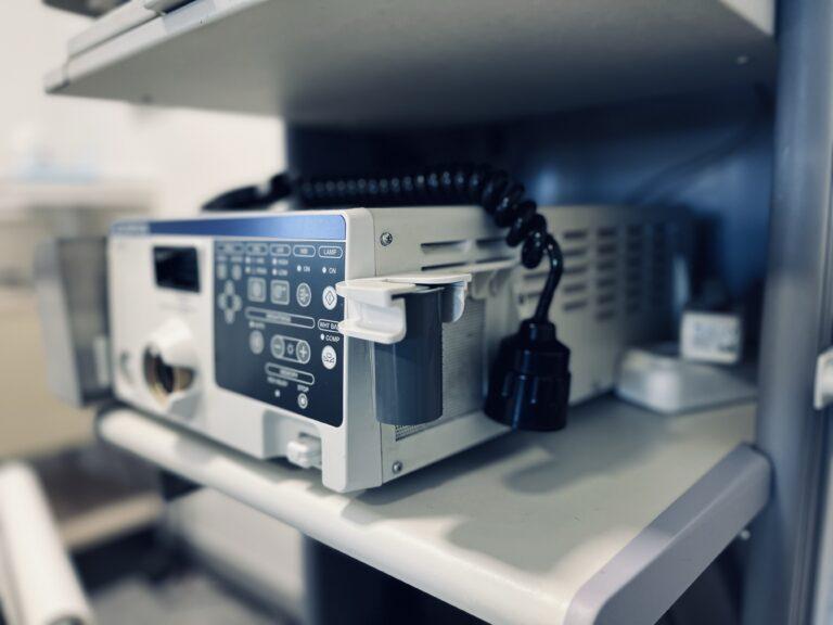 Weiterhin verfügen wir über einen voll ausgestatteten Endoskopieraum mit moderner Endoskopie- und Gerätetechnik. Während der Untersuchung werden sie kontinuierlich mittels Monitorüberwachung von Blutdruck, Puls sowie Sauerstoffsättigung im Blut überwacht, um eine sichere Sedierung zu ermöglichen. Zusätzlich kann ein EKG mit in die Monitorüberwachung einbezogen werden.